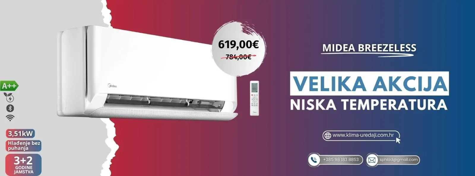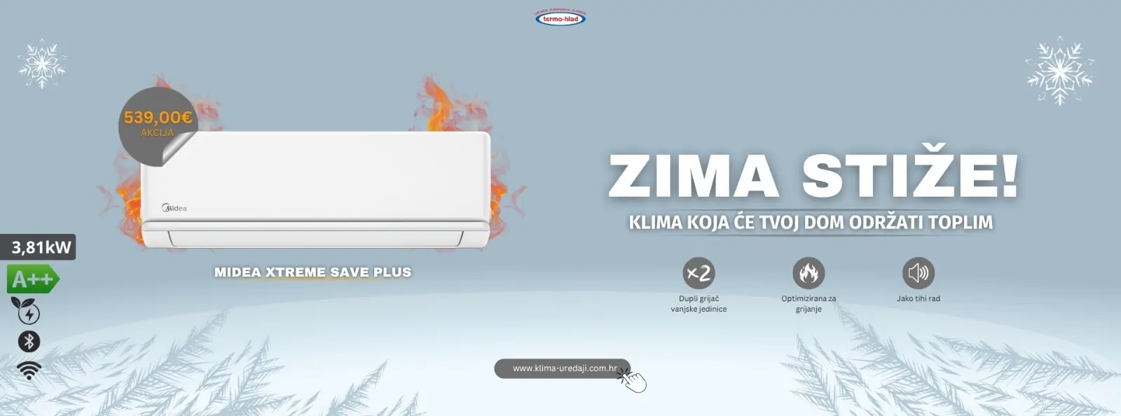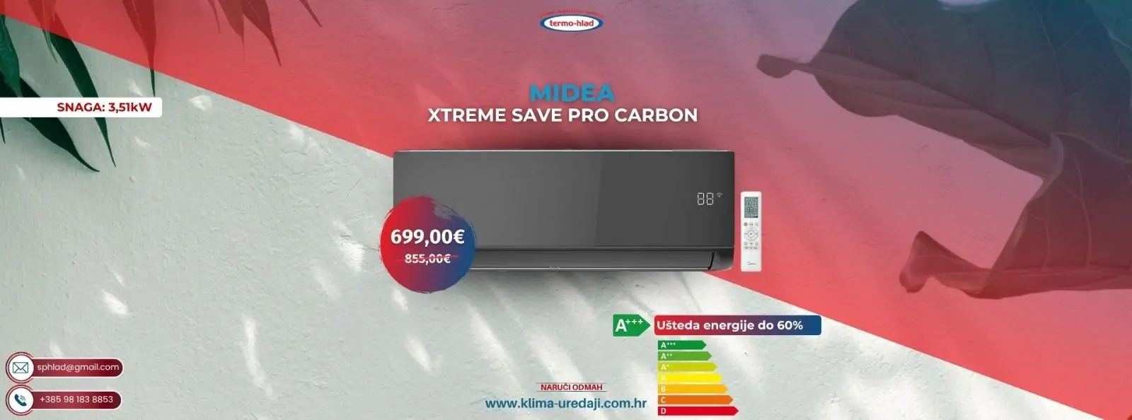 Ako želite povoljan uređaj, a pritom ne želite odustati od kvalitete, postoje modeli u A++ klasi s osnovnim funkcijama koji nude odličnu vrijednost za novac. Midea Xtreme Save PLUS MOX102-12HFN8-GH/MSAGBU-12HRFNX-QRD0GW izuzetno štedljiva klima koja se ističe povoljnom cijenom i pouzdanim radom.